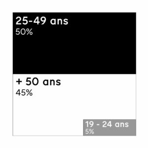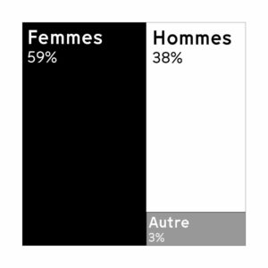 Nous trouvons dans les participant·es une légère majorité féminine (59%), contre 38% d’hommes et 3% de personnes se définissant comme non-binaires. Les répondant·es sont légèrement plus âgé·es que les chiffres que nous trouvons sur d’autres outils de mesure avec 50% de 25-49 ans, 45% de plus de 50 ans et seulement 5% de 18-24 ans.