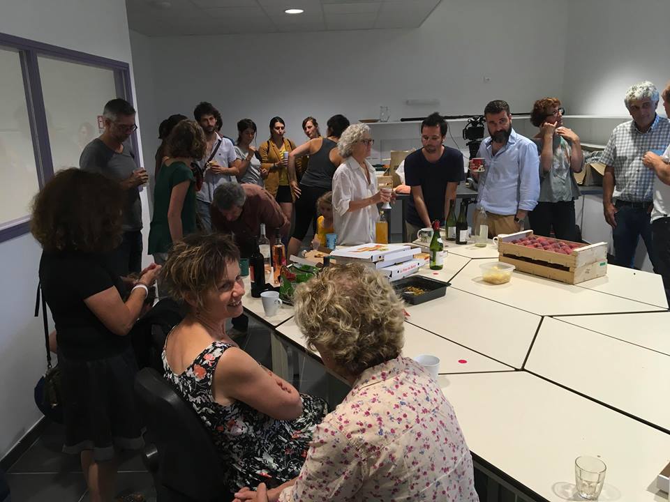 Le Collectif est un vaste chantier ! Il faut donner de soi, changer de ton, savoir se dire, concéder… Cela vaut le coup. Tiens, en parlant de chantier… Ce chantier-là a commencé en 2016, avec une première pierre posée pendant le festival des États généraux du film documentaire. Comme chaque année, c’était au mois d’août. Il faisait chaud. Depuis, un bâtiment de 1 500 m2, financé par la Communauté de Commune Berg-et-Coiron, est sorti de terre. …Au début du mois de juillet, la migration vers les nouveaux locaux s’est engagée pour quelques structures (Docmonde, Lumière du monde, film-documentaire.fr, AndanaFilms, Docfilmdepot et Tënk). En septembre, nous serons rejoints par Ardèche images (École du doc, les États généraux du film documentaire, la Maison du Doc, les Toiles du doc). Au-delà du rapprochement physique qu’il induit, ce déménagement va permettre une collaboration plus étroite et de concrétiser ensemble des perspectives d’avenir. Pôle de coopération réunissant les différentes structures – auparavant parsemées dans le bourg -, ce lieu va également apporter un nouveau souffle aux activités lussassoises. Les locaux hébergent des espaces de post-production – studios de montage, mixage, étalonnage – qui seront équipés par Tënk au fil des mois à venir afin d’accueillir des équipes tout au long de l’année. De nouvelles entreprises et associations nous ont rejoint dans les bureaux, parmi d’autres encore à venir. Même si l’enseigne n’est pas encore installée, le bâtiment porte déjà un nom. Sur la façade, sera bientôt indiqué : L’Imaginaïre. Alors que pour nommer Tënk, nous avons fait appel au Wolof, langue majoritaire au Sénégal, c’est à l’Occitan que nous empruntons cette fois le mot. Il signifie « le doux rêveur, le fou du village »… Ce sont sous ces auspices que nous démarrons une nouvelle ère.