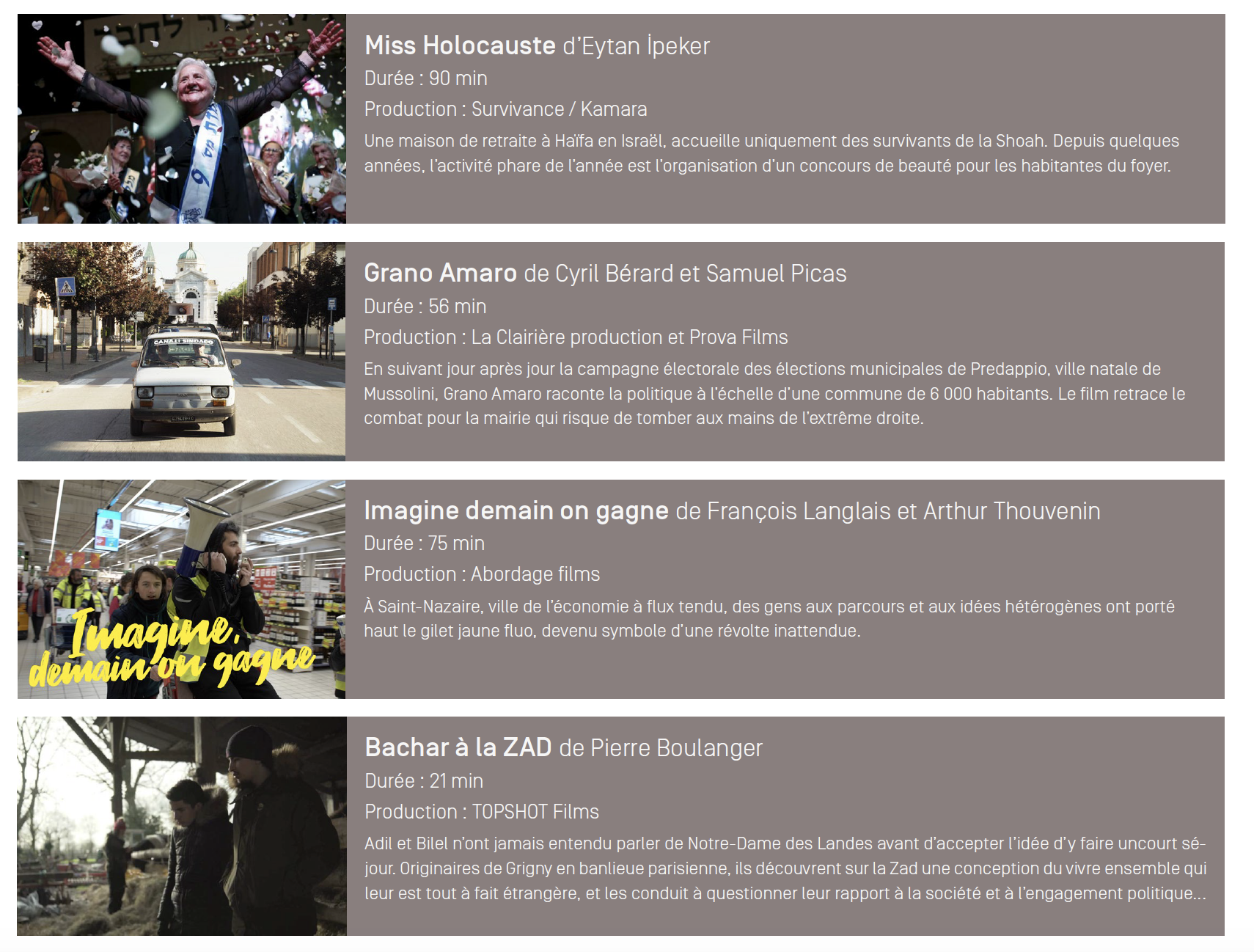 Parmi la cinquantaine de projets envoyés, nous en avons retenu quatre. Les équipes de ces films vont donc être accueillies à Lussas en Ardèche (où réside Tënk.fr) pour de la post-production. Et ces documentaires seront diffusées sur Mediapart et sur Tënk en 2020 et 2021.