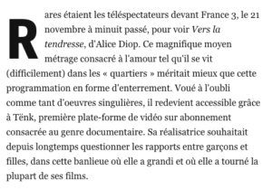 Télérama – « Magnifique film sur l’amour dans les « quartiers »